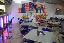 Сразу же стоит отметить, что в компьютерном клубе Click-Net отсутствует гардеробное помещение. То есть зимой вам придется мять куртку, вешая её на спинку стула, на котором вы же и будете сидеть. Click-Net так же выделяется своим кафе-баром: вы можете встретить его сразу же, при входе в компьютерный клуб. К этой части клуба не придерешься, даже если очень сильно постараться. Тут есть все: удобная барная стойка, достаточное количество столов и стульев, интересные картинки на стене и даже десять мониторов, которые расположены прямо над баром. Это очень интересно, а главное - это все по доступной цене. Пусть в кафе-баре Click-Net вы не сможете выпить пива или шикарно поесть, зато вы можете сэкономить на еде хорошую сумму денег. И я признаюсь, что тут не нужен даже магазин, который, кстати говоря (даже если он и понадобится), находится в пятидесяти метрах от клуба. Естественно в клубе есть уборная, которая оставляет желать лучшего. Перед уборной находится, так называемая, "курилка", что создает определенный дискомфорт при посещении туалета (некурящим, естесственно).