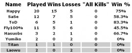 Южная Корея Soju однозначно является лучшим игроком Евросоюз SK Gaming, при статистике в 9 побед на 9 игр. Наиболее впечатляющим его выступлением был матч против Весь мир MYM Dreamteam, в котором он после счета 1-1 сумел обернуть матч в пользу своей команды (4-1), обыграв Южная Корея Lucifer`а, Южная Корея Moon`а и Южная Корея Susiria.