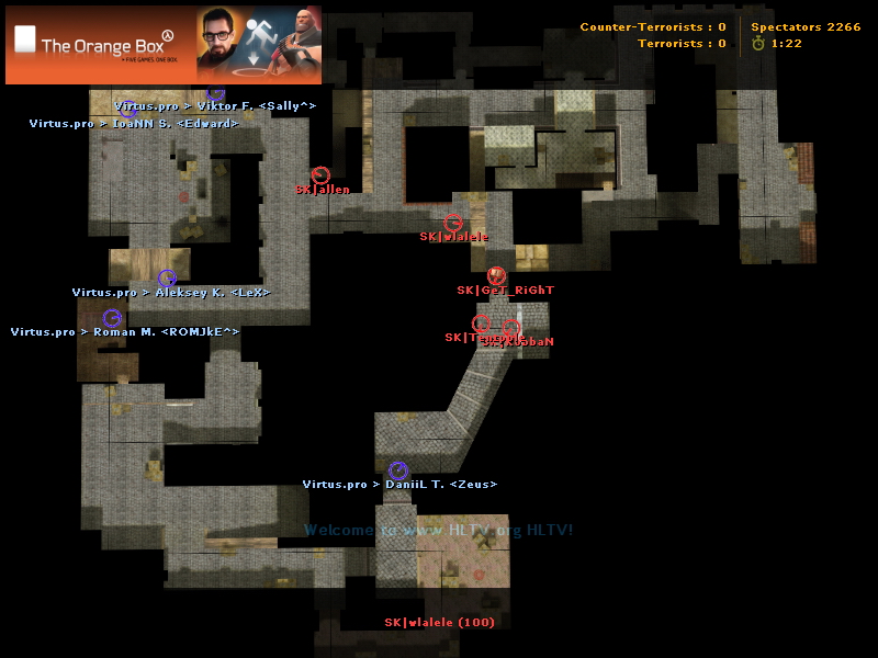 В этой статье я попытался проанализировать те раунды, что были проиграны российской командой Virtus.pro в матче на de_inferno против SK Gaming на финалах турнира Extreme Masters II. К сожалению, в середине матча с HLTV возникли некоторые проблемы, поэтому часть раундов за первую сторону записаны не были, о них мне пришлось судить по PoV демкам, а для анализа они намного хуже, чем HLTV.