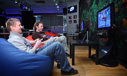 В ИЦ 4Game кроме просторного игрового зала так же имеется небольшой гардероб, рассчитанный на максимально количество присутствующих в клубе. Кроме того, если вы неожиданно проголодаетесь, вашим услугам предлагается бар, в котором вы можете быстро и вкусно перекусить. Среди прочих стоит отметить шикарный интерьер кафе, в котором вы можете насладиться игрой по Sony PlayStation 3! Расположившись на мягких пуфиках и забыв о вселенских проблемах. Ну и главное преимущество клуба 4Game от других конкурентов – это наличие игровой сцены. Она сделана крайне удобно и в этом помещение есть все условия, чтобы комфортно следить за играми.
